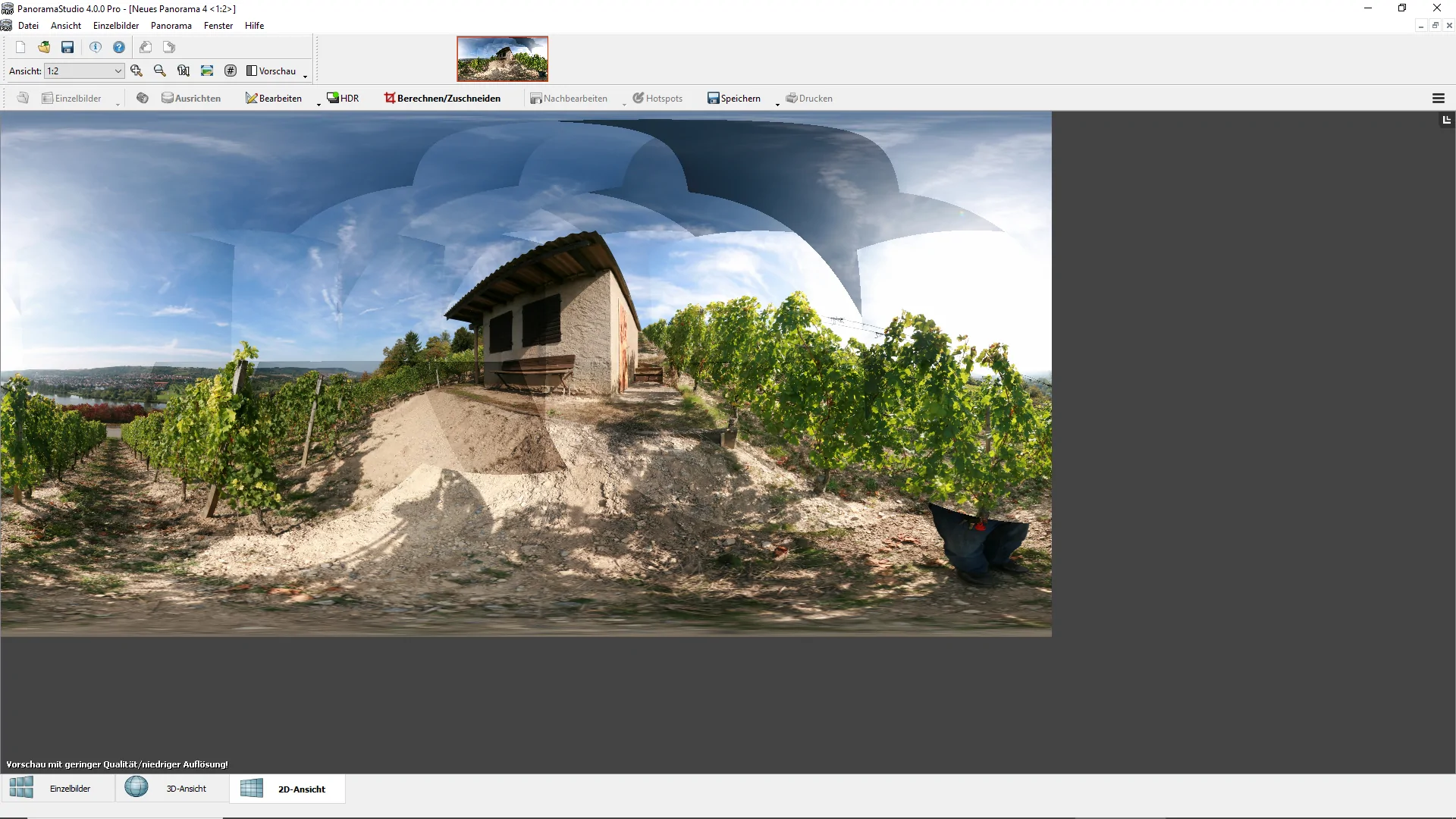 PanoramaStudio kann sofort nach dem Ausrichten der Bilder eine grobe Vorschau des Panoramas in 2D oder 3D anzeigen.